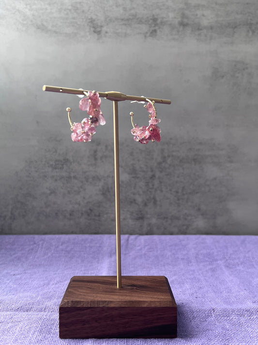 Pink Tourmaline & Pearl Wire Wrapped Hoop earrings